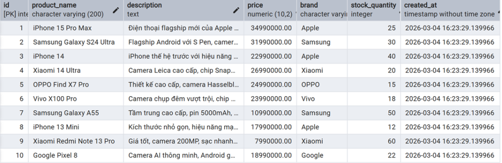 Tạo 10 sản phẩm cho bảng products