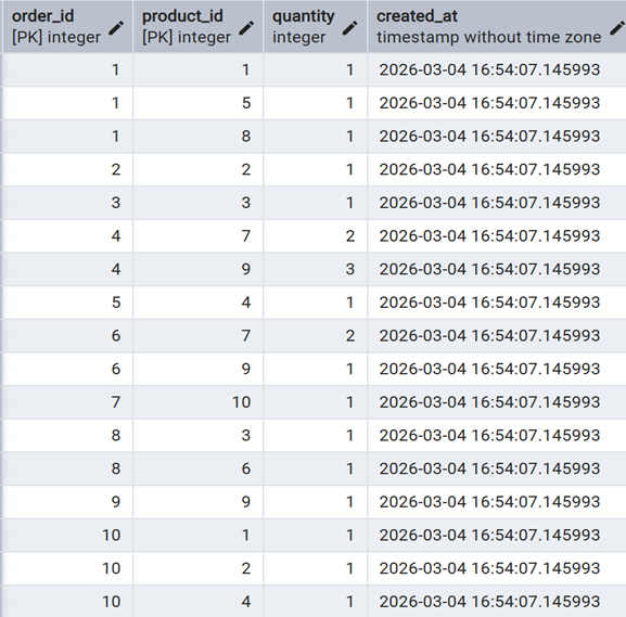 Chèn 10 đơn hàng cho bảng orders