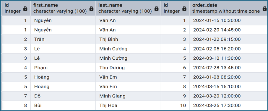 - Bảng RIGHT: orders (lấy toàn bộ dữ liệu)