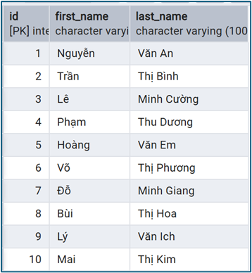 - bang2: bảng phải (RIGHT), lấy toàn bộ dữ liệu