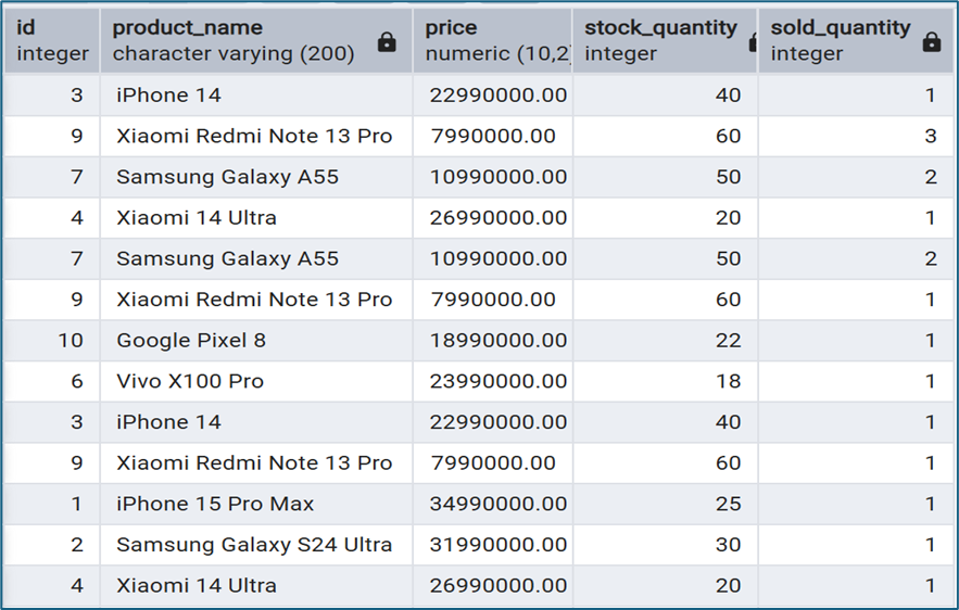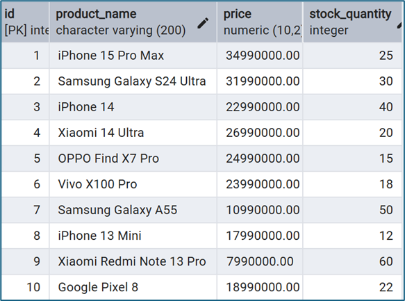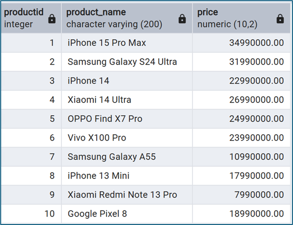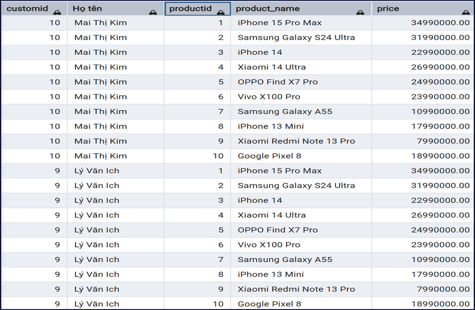 - Bảng RIGHT: products (lấy toàn bộ dữ liệu)