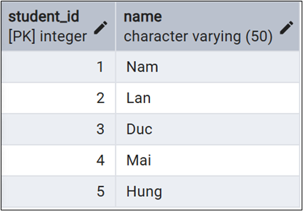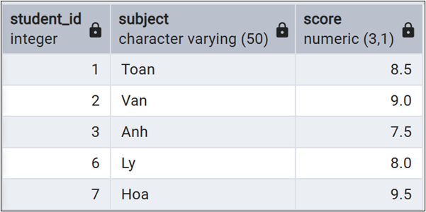 Ví dụ với bãng students và scores