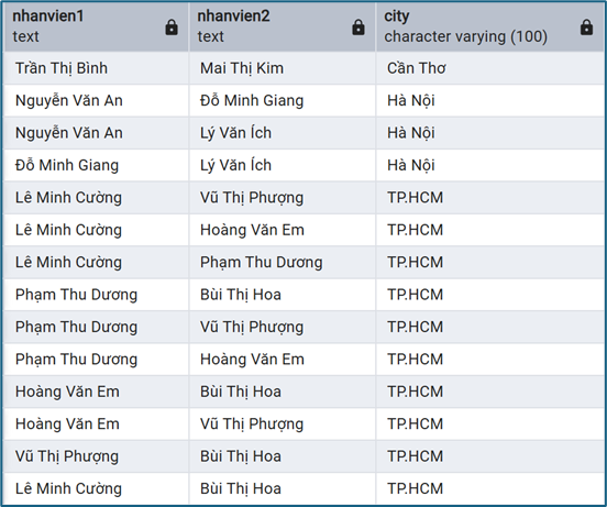 Ví dụ 2: Tìm các nhân viên cùng thành phố