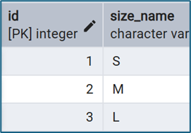 CROSS JOIN sizes s