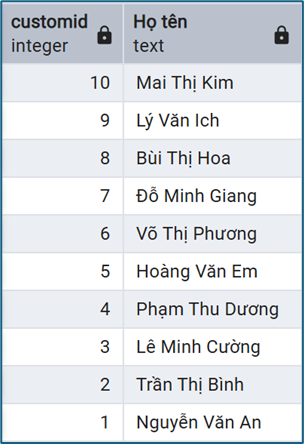 Mời xem ví dụ khác : Lấy danh sách khách hàng có đơn hàng