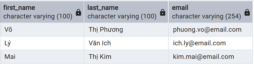 Ví dụ 2: Lấy danh sách email và họ tên của khách hàng và nhân viên