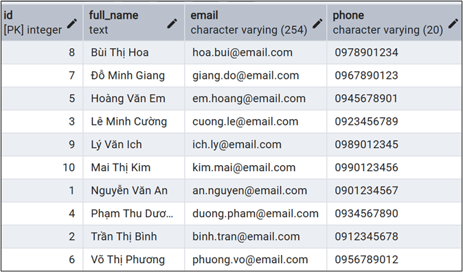 SELECT id, full_name, email, phone