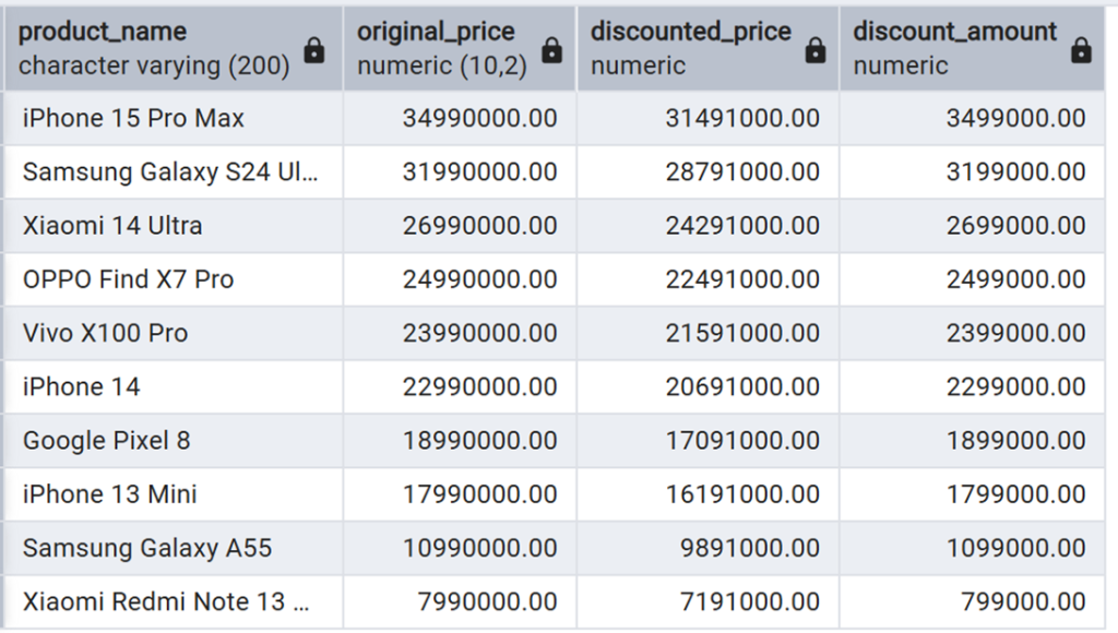 Ví dụ: Tính giá sau khi giảm 10% từ truy vấn con