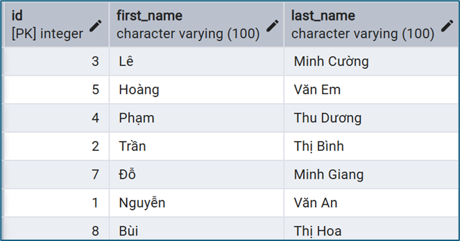 SELECT id, first_name, last_name