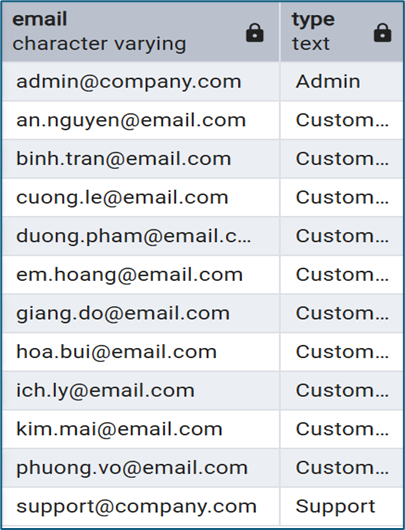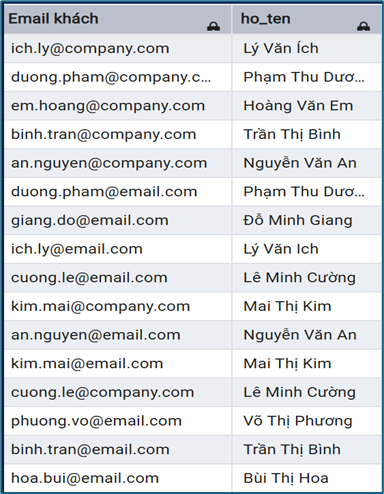 Ví dụ: Danh sách email từ khách hàng và có thể từ nhân viên (giả sử)