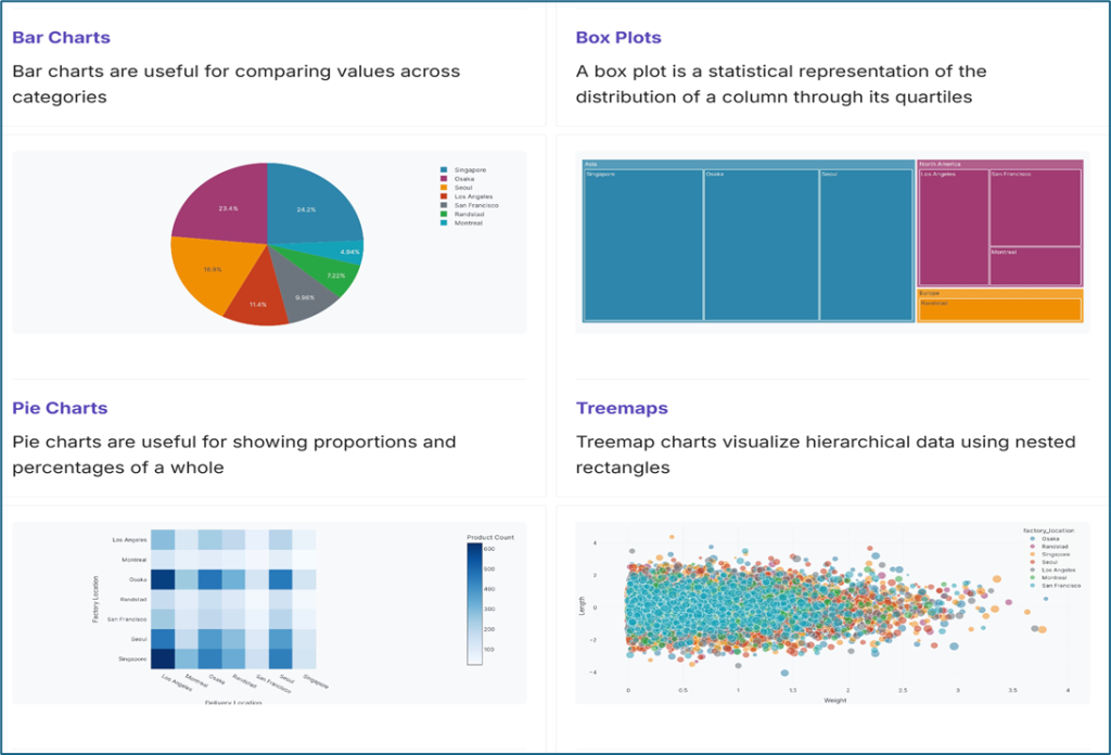 Một trong những điểm mạnh lớn nhất của Plotly là hỗ trợ nhiều loại biểu đồ khác nhau. Plotly Python có thể đáp ứng nhiều nhóm nhu cầu như biểu đồ thống kê, tài chính, địa lý, khoa học, 3D và các dạng trực quan hóa tổng quát. Điều này giúp Plotly phù hợp với cả người mới học lẫn người dùng chuyên sâu.