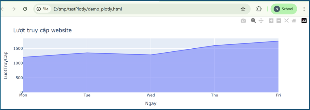 Kết quả sẽ có file demo_plotly.html. Bạn chỉ cần nhấp đúp để mở và xem biểu đồ tương tác ngay trên trình duyệt. Điểm hay của cách này là có thể tạo sản phẩm trực quan hóa để chia sẻ rất nhanh, không cần dựng full dashboard ngay từ đầu.